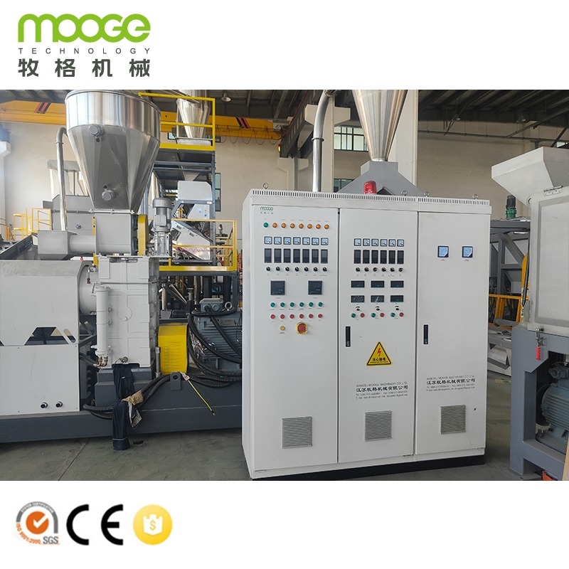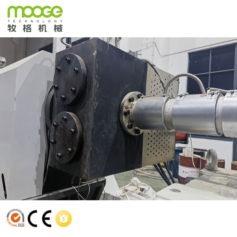 Esta máquina de granulação de plástico para reciclagem de Pp Pellet Pe Flakes foi projetada e fabricada pela MOOGE TECH, que é amplamente utilizada para resíduos de material rígido de plástico, como HDPE, PP, PC, PS, ABS, etc.