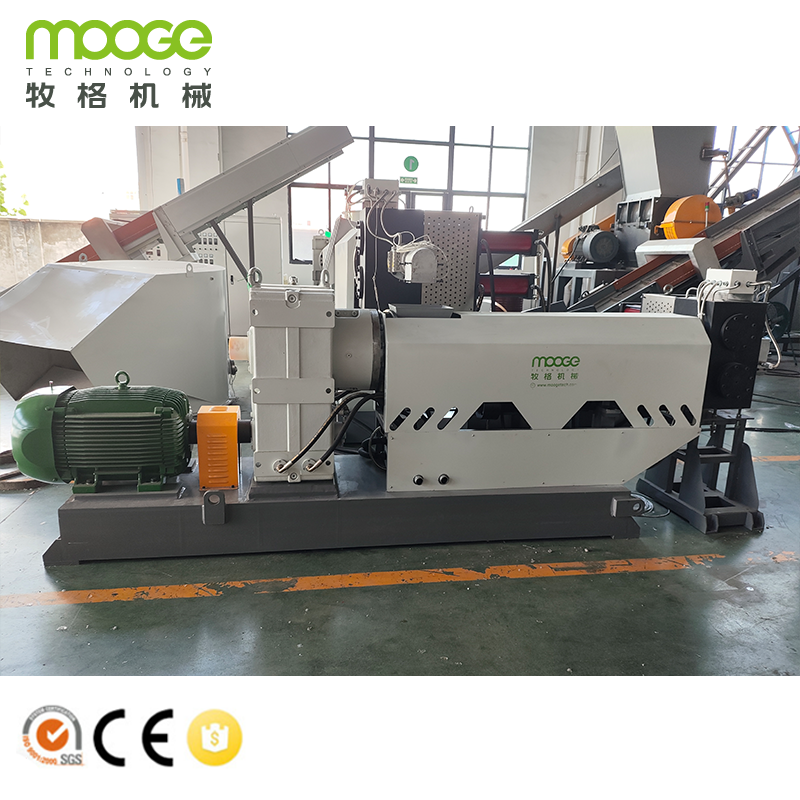 Esta máquina de granulação de flocos de garrafas de plastico de reciclagem de pelletização Pe Pp foi projetada e fabricada pela MOOGE TECH, que é amplamente utilizada para resíduos de material rígido plástico, como HDPE, PP, PC, PS,ABS, etc.