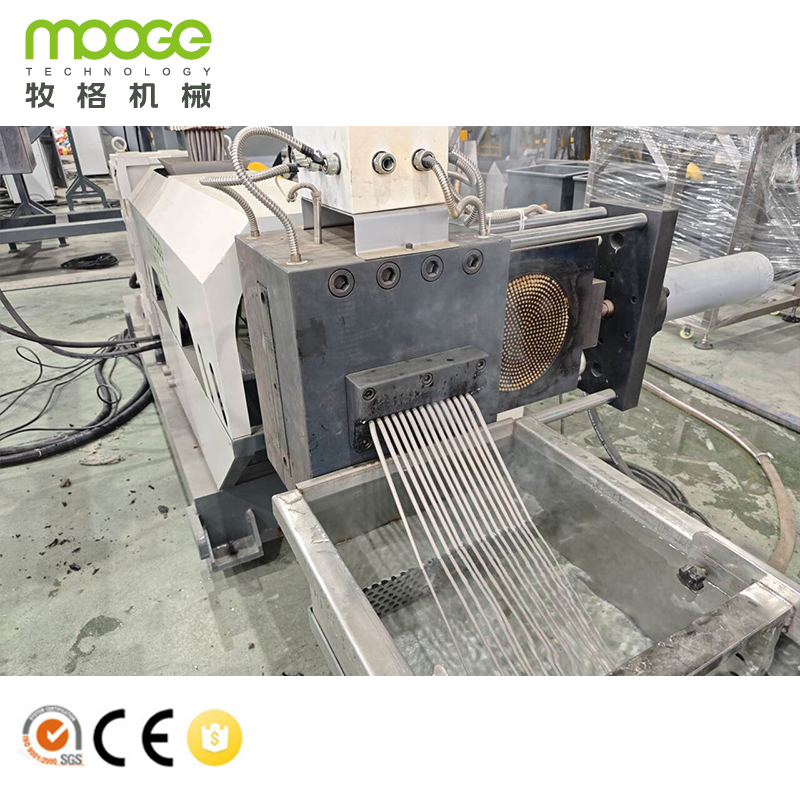 Esta máquina de pelletização de plástico é projetada e fabricada pela MOOGE TECH, que é amplamente utilizada para resíduos de material plástico rígido, como HDPE, PP, PC, PS, ABS,etc..